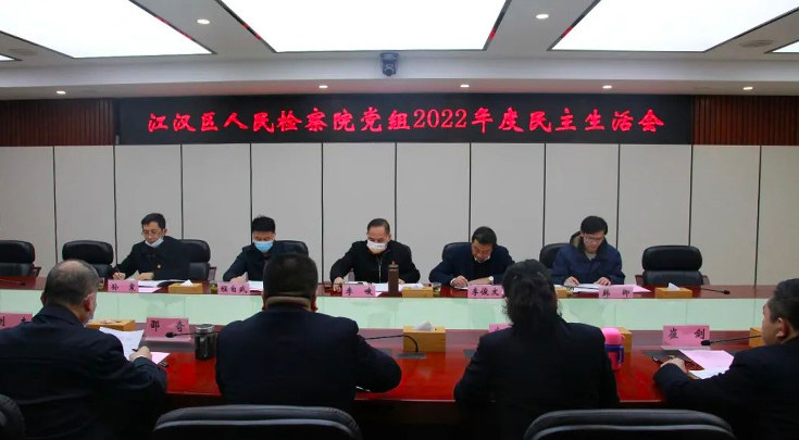 根据区委和上级检察机关统一部署要求,2023年2月16日下午,武汉市江汉区人民检察院召开2022年度民主生活会。市检察院检务督察部主任李峻、区委指导组副组长李俊文、区委政法委副书记程自武、区纪委监委第三派出纪检监察组负责人孙震等同志到会指导。全体班子成员参加会议。院党组书记、检察长魏号国主持会议并讲话。